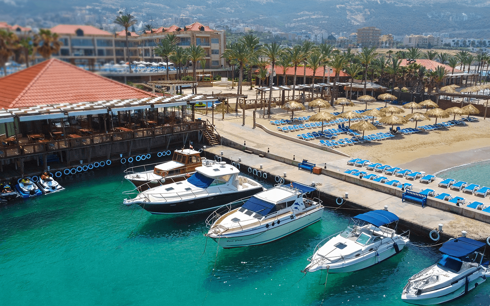 - Main Restaurant, Del Mar: Serves breakfast, lunch, and dinner with a mix of Lebanese and seafood cuisine, located near our beach overlooking the marina.